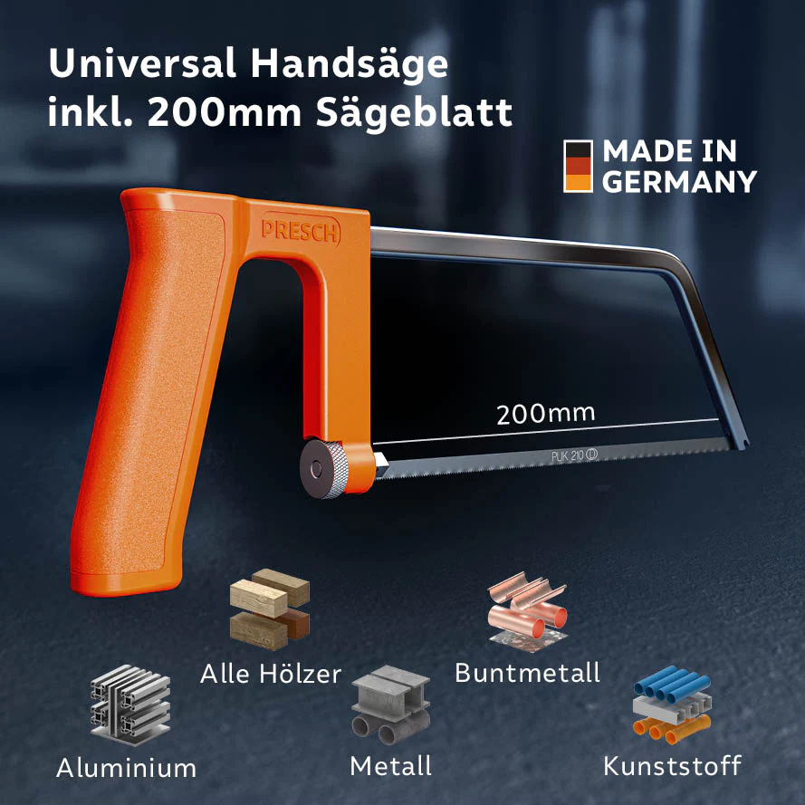 Mit ihren 200mm sieht sie vielleicht harmlos aus, aber diese Säge mit Universalsägeblatt hat es in sich: Ihre robuste Konstruktion bringt ordentlich Spannung auf das Bi-Metall-Sägeblatt, so dass Alu und Metalle schnell kleinbeigeben. Zudem liegt die Bügelsäge extrem gut in der Hand. mehr erfahren >>