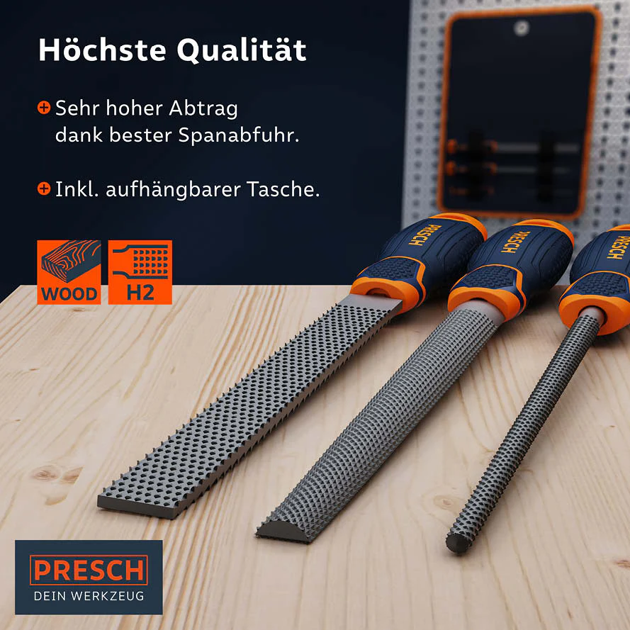 Dieses Holzraspel Set lässt keine Wünsche offen: 3 hochwertige Raspeln für Holzarbeiten. Mit diesem Raspel Set für Holz an deiner Seite bist du jederzeit optimal präpariert. Tolle Werkzeuge für deine Werkstatt. mehr erfahren >>