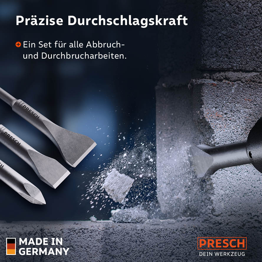 SDS-Plus Meißel Sets – dein Schlüssel zu handwerklichem Erfolg. Die Meißel bieten Qualität und Leistung, die Handwerker weltweit schätzen. Egal ob auf der Baustelle oder in der Werkstatt, sie sind dein zuverlässiger Begleiter für präzise und effiziente Arbeit. mehr erfahren >>
