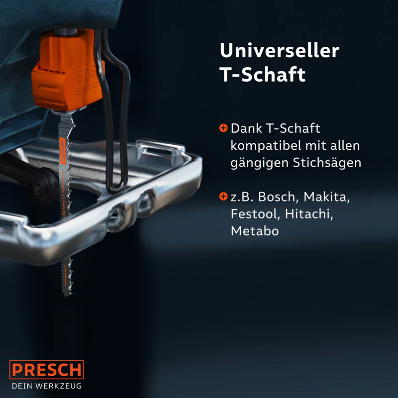 Mit diesem Stichsägeblatt Set geht es immer vor und zurück: Dank der feinen, präzisen Zahnung frisst sich Sägeblatt kurvenreich durch Weich- und Konstruktionsholz. Faserplatten, MDF, Tischlerplatten… sogar Kunststoffen fügst du mit diesem Stichsägeblatt absolut saubere Kurvenschnitte ohne Ausrisskanten zu. Dank der hohen Verarbeitungsqualität „Made in Germany“ leistet dir dieses Sägeblatt lange gute Dienste. mehr erfahren >>